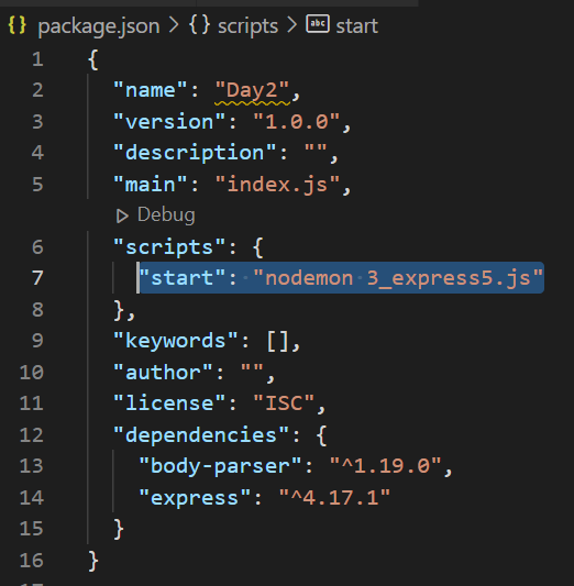 - package.json 내 "scripts" 부분 드래그친 문장으로 수정해주기
