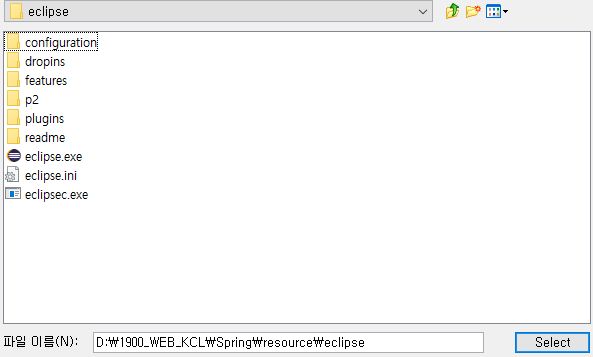 6. 이클립스 실행파일이 있는 상위폴더에서 경로잡고 Select 클릭해주기