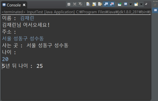 System.out.println("5년 뒤 나이 : " + (age + 5));
