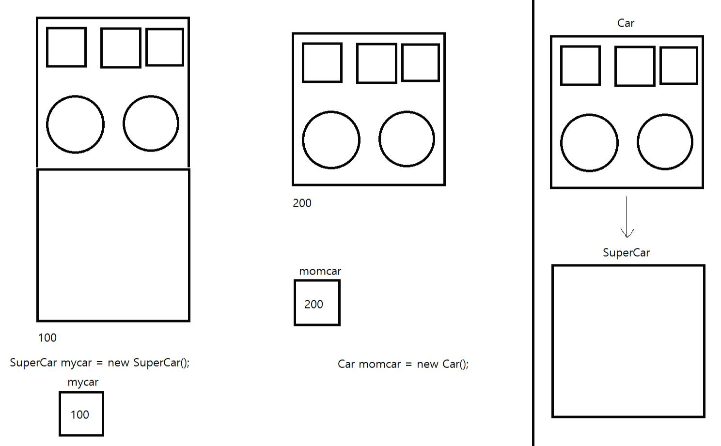 메모리에 자식 클래스의 필드만 올라갔다면 자식 객체로 부모 클래스에 있는 필드에 절대 접근할 수 없다.