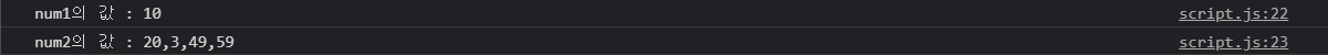 console.log(`num2의 값 : ${num2}`);