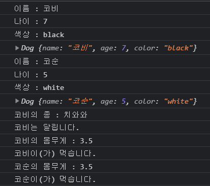 const cobi = new Dog("코비",7,"black");