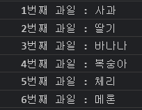 console.log(`${Number(i)+1}번째 과일 : ${fruit[i]}`);