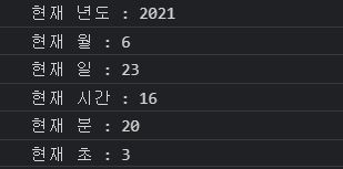 console.log(new Date()); //Sun Jun 20 2021 16:03:59 GMT+0900 (대한민국 표준시)