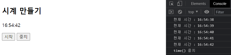 <input type="button" value="중지" onclick="stopTime()">